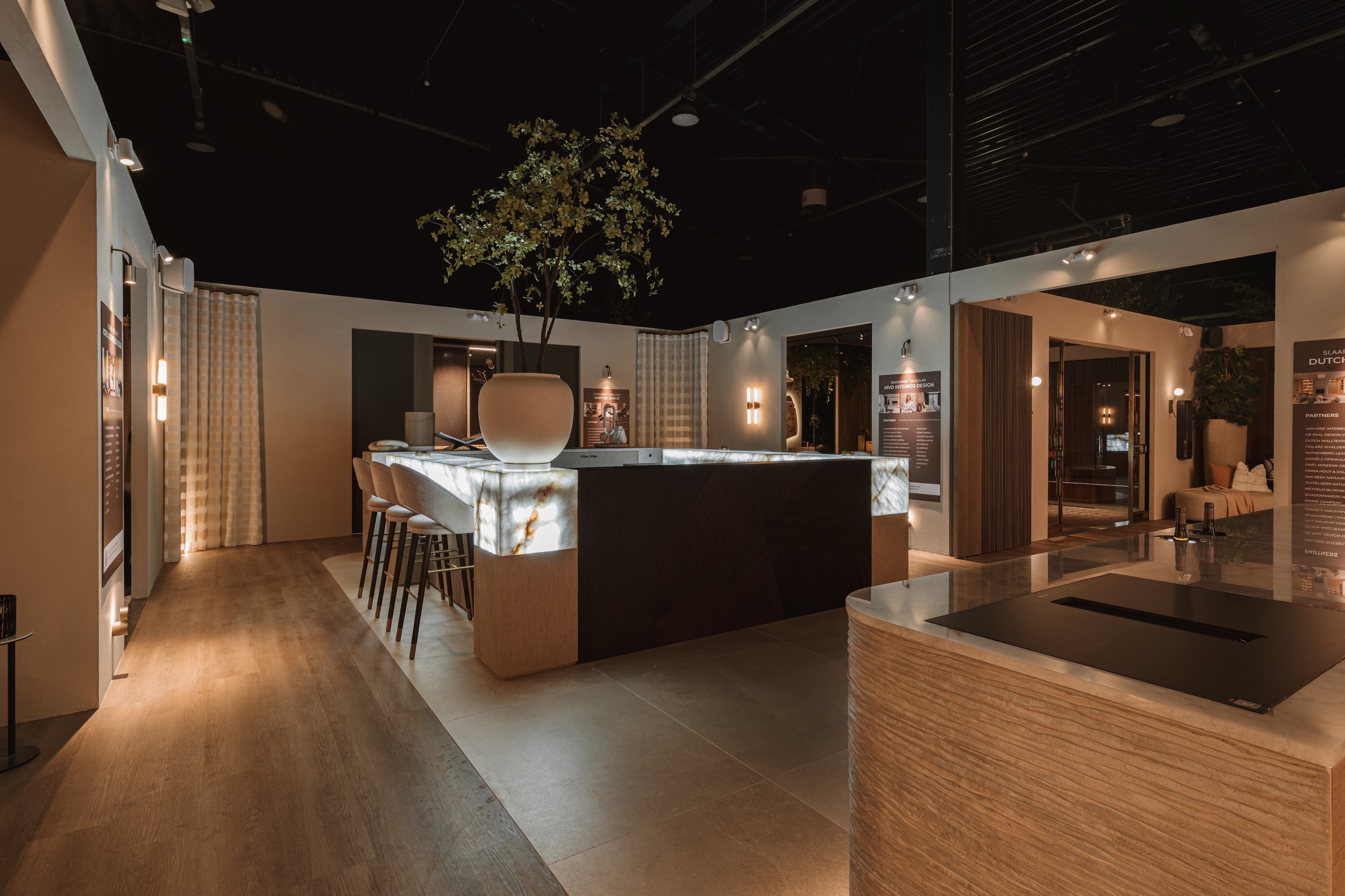 Ons team, gespecialiseerd in verlichte natuursteenoplossingen, verzorgde het volledige proces: van materiaalkeuze tot plaatsing en afwerking. Het resultaat is een eyecatcher die niet alleen functioneel is, maar ook het middelpunt van de ruimte vormt.