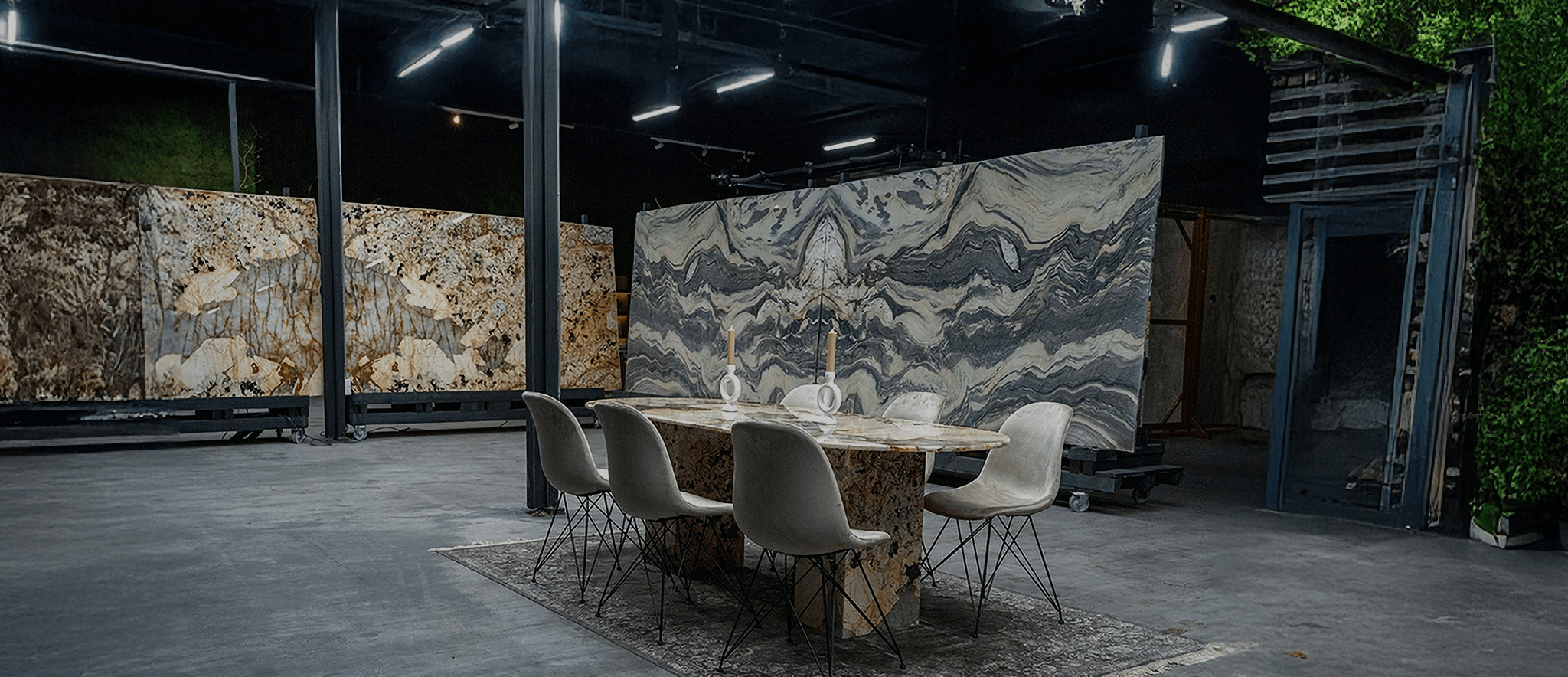 Onze ruime showroom van maar liefst 1.200 m² presenteert een indrukwekkende variatie aan slabs – van tijdloze klassiekers tot zeldzame en uitgesproken patronen – zodat u altijd het perfecte materiaal vindt voor uw project.